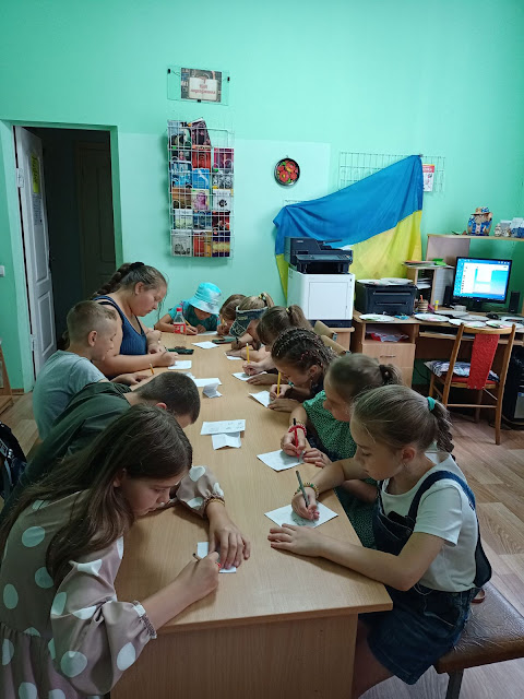 Своїх відвідувачів бібліотека запросила на екологічну стежину "Ми відповідальні за майбутнє", де діти дізнались про цікаві факти наших водойм, про забруднення наших ставків, про екологічні проблеми та їх наслідки, пограли екологічні ігри та виготовили мешканця , якого зустріли у ставку - жабу.